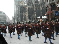 Paraden am Hof der Habsburger spielten seit Jahrhunderten eine große Rolle. Wir folgen den Spuren der Leibwachen der Habsburger, von der Schweizer Garde zur Zeit Maria Theresias bis zur Leibgarde von Kaiser Franz Joseph und Kaiserin Elisabeth. Eine traditionelle Wachablöse der Hoch- und Deutschmeister mit Traditionsmusik im Inneren Burghof rundet den Spaziergang ab.